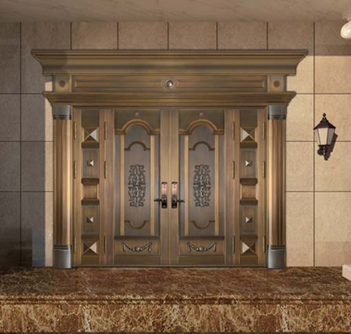 4.美观性:对开铜门之所以受人喜爱,很大程度上与其精美的装饰工艺有关,精美的铜工艺用在铜门上,主要是一些经过浮雕、镂空、锻打后的花纹和吉祥图案。