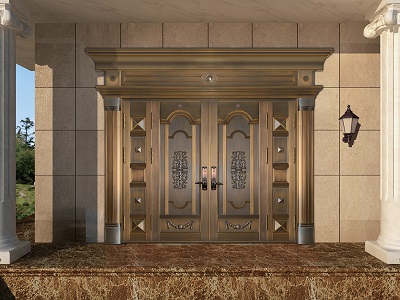 风格统一:铜门款式需与建筑整体风格协调(如欧式别墅配罗马柱,现代公寓配极简线条)。